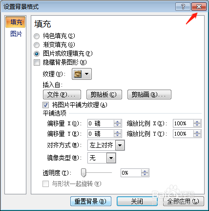 选择喜好的填充体例后 直接选择右上角的封闭按钮就可以了。
