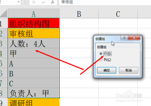 打开建立组对话框,然后按照本身数据是行或者列来选择
