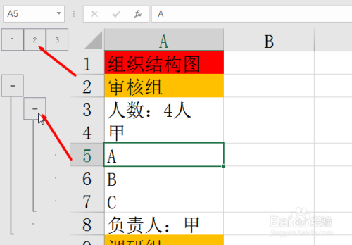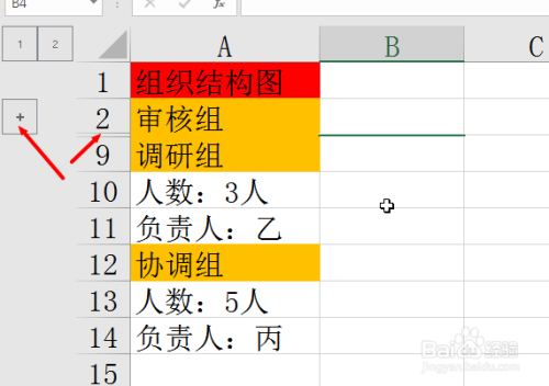 这样就可以看到在数据左边有一个缩展框,可以点击上方的【—】来缩小级别