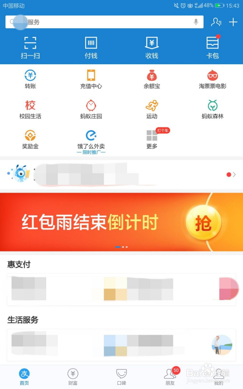 进入支付宝的“首页”面之后,点击上方的搜索框。