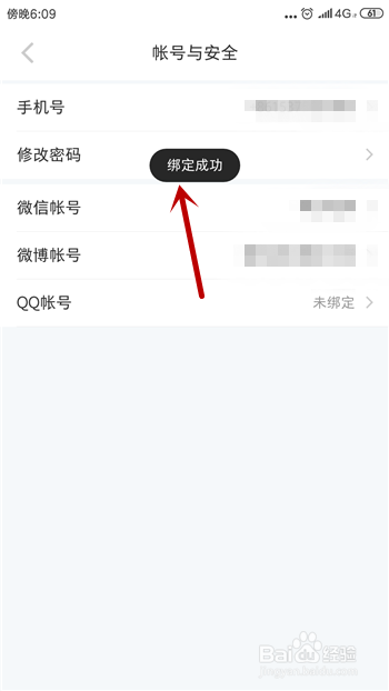 这样就可以当作功绑定微信账号了,返回上个界面可看到后方显示的绑定微旌旗灯号。
