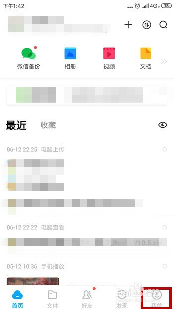 然后在百度网盘的首页里点击右下角的【我的】选项。