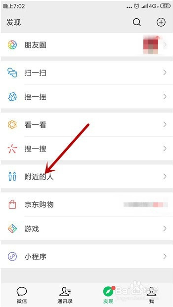 接着在微信的发现界面里我们点击打开【四周的人】。