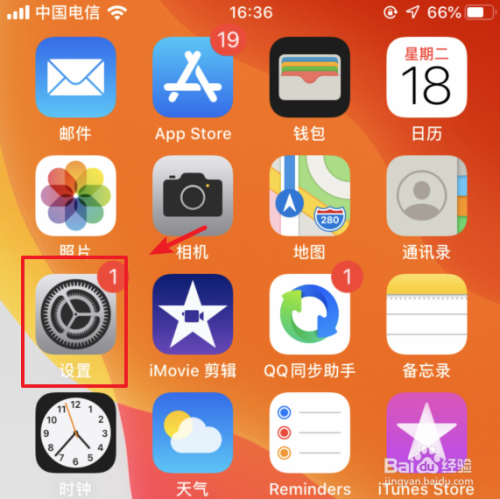 解锁苹果手机进入系统后,在手机内点击设置的图标进入。