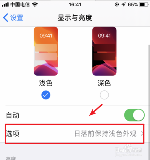 点击打开后,默认是跟着日出日落的时候主动切换,点击该选项进入。