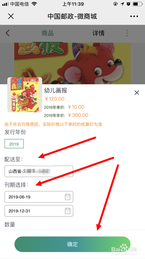 选择配送区域、刊期以及数目,点击 确定 。