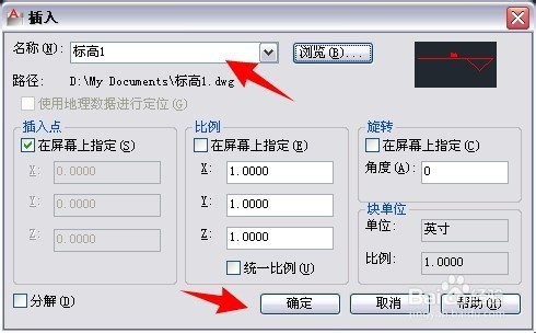 按照提醒,插入点为横线的中上部(此操作插入的为标高数值的区域);