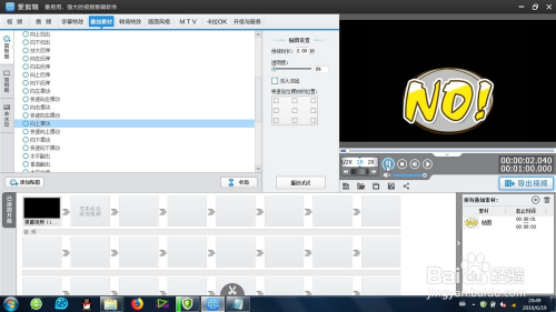 其实这个快速标的目的上摆动结果在剪辑软件里面是很轻易实现的。这个结果的存在位置是:叠加特效-加贴图特效-常用特效,必然要找到
