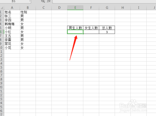 我们先统计男生的人数,选中输出汉子人数的单位格