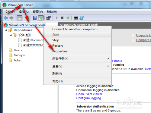 右键单击visualSVN Service——properties属性。