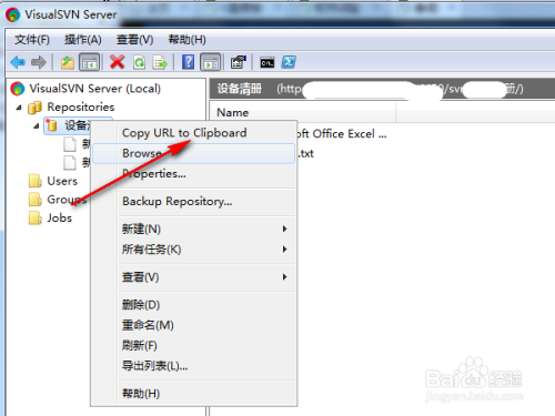 正常环境下,我们设置装备摆设好了svn办事器程序今后就可以在仓库上右键单击,然后复制url地址了。