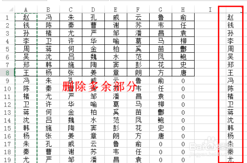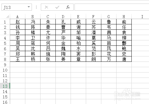下图的Excel表格中是百家姓的前64个,被摆列当作8行8列的表格,此刻要将它转换当作一列,要如何快速实现呢?