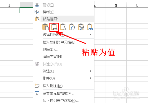 复制A列内容,将其粘贴到J各位置,粘贴格局为“数值”,如下图所示:
