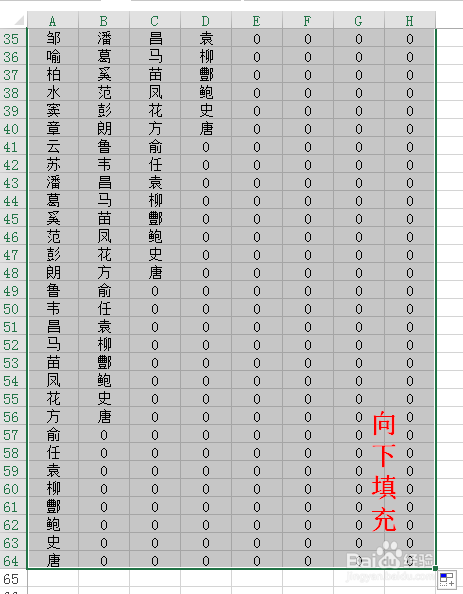 选中A9:H9单位格区域,标的目的下填充到H64单位格,完当作后如下图所示: