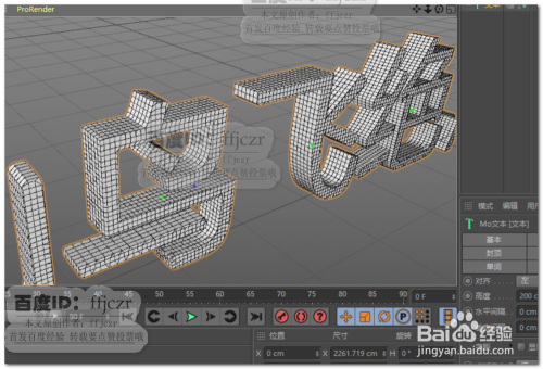 更改文本内容,这里借用古诗江雪中的内容:千山鸟飞绝,万径人踪灭。调整对象中的点插值体例为同一,封顶中的类型为四边形,尺度网格;使文本的所有文字都发生较为平均的网格。如图所示。