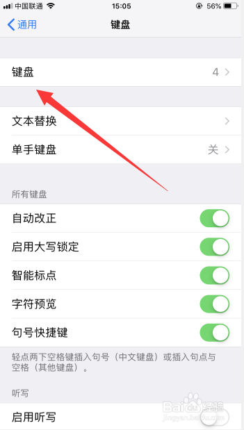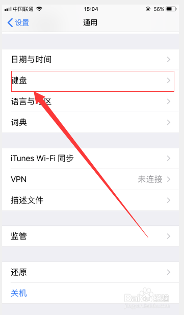 在当前打开的通用页面上拉滚动找到【键盘】冲击打开