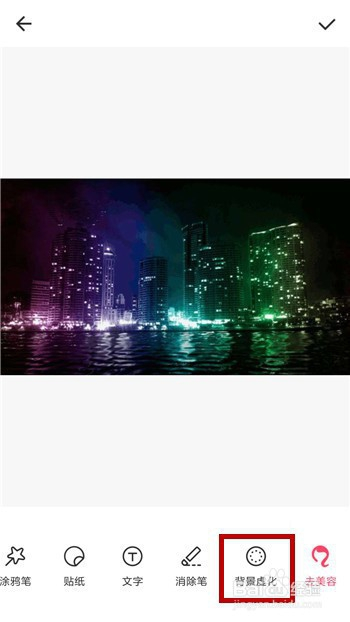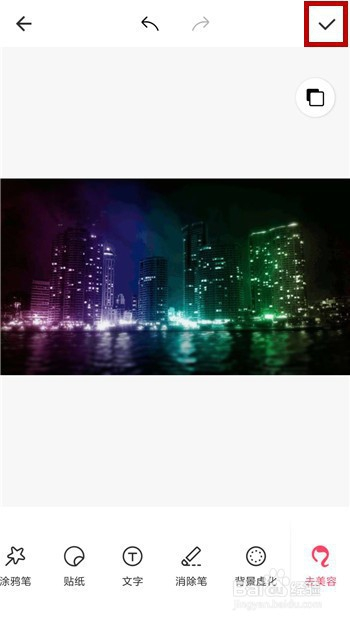 添加好虚化结果后返回到编纂界面,此时点击右上角的【√】即可。