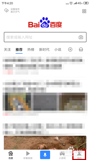 打开百度浏览器,在首页里找到右下角的【我的】选项并点击。