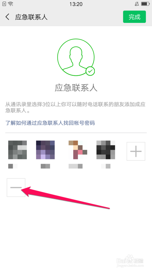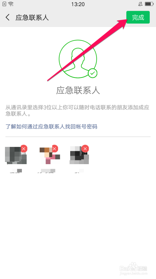 此时在已添加的应急联系人老友中呈现了红色的标签点击【红色的标签】暗示删除。