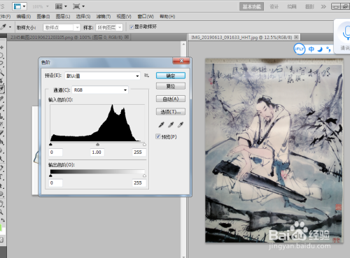 可以看到挂历图片比力的暗,点击菜单调整--------色阶,点击滑动调整画面的明暗度。