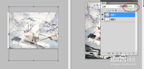 点击移动东西把办理图像移动到折扇上面,调整一下画面的透明度,使它的透明度酿成50%,这样我们可以清楚的看到这张画在折扇上的位置,