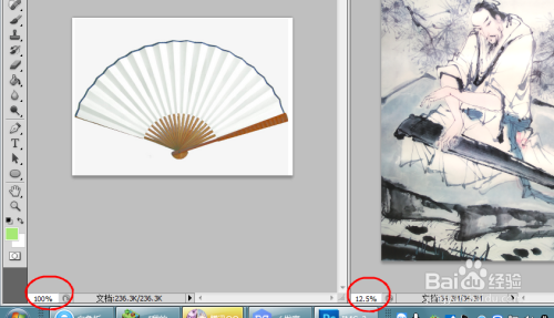 可以看到两张图片的大小很纷歧样,挂历图片比力大,而折扇图片比力的小,我们先调整一下画面的大小,点击调整,--图像大小,进行调整调整当作与折扇图片差不多大小,
