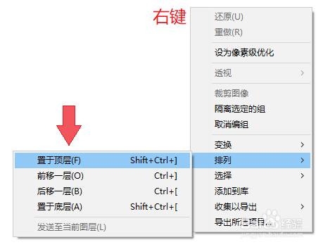 选中较小的文字,右键> 摆列 > 置于顶层