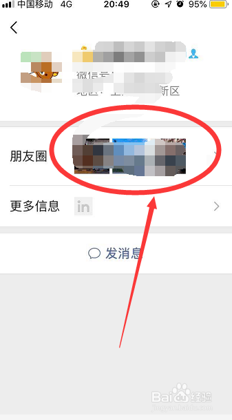 在朋友圈界面,点击小我图标,进入小我信息界面