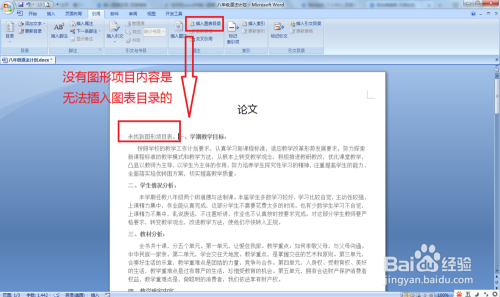 要插入图表目次,首先在论文那边要用图表类项目,要不点击插入图表目次就会显示“未找到图形项目表”。