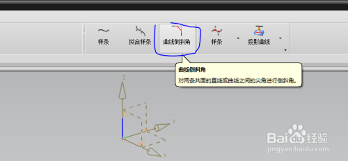 在弹出的菜单中即可找到曲线倒斜角号令,鼠标左键单击该号令后即可将其添加到曲线东西条中,如图所示。
