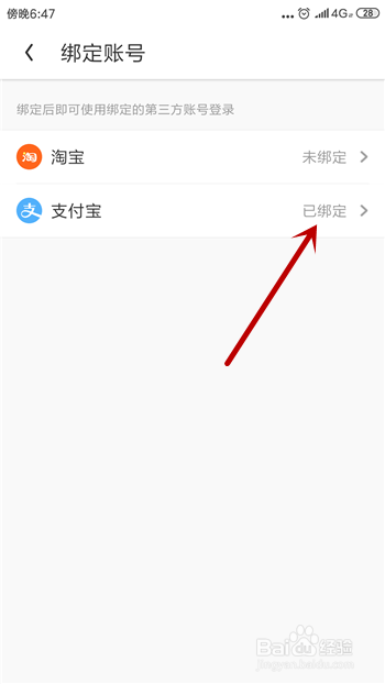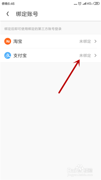 在绑定账号里有支付宝和淘宝,这里我们需要点击【支付宝】。