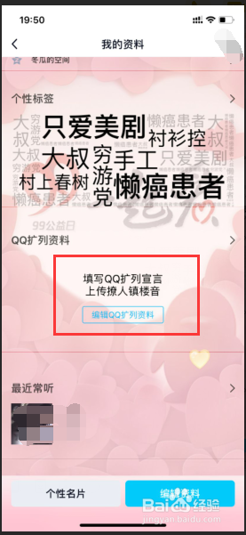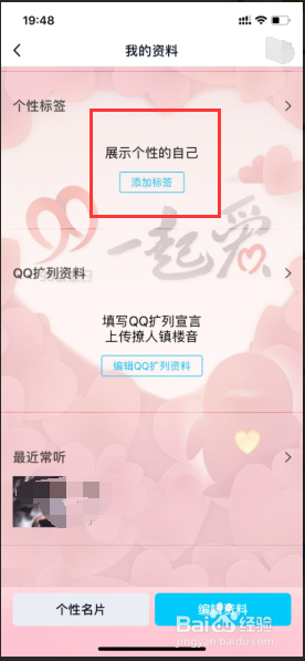 标签设置之后,回到上一页,点击编纂qq扩列资料;