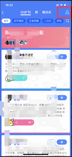 进入扩列界面,点击最右上角的图像,如下图;