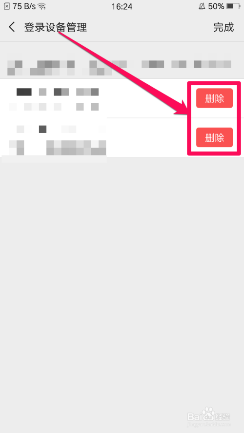 此时在设备登录栏中呈现删除选项按钮,然而需要的删除设备可点击【删除】选项按钮。