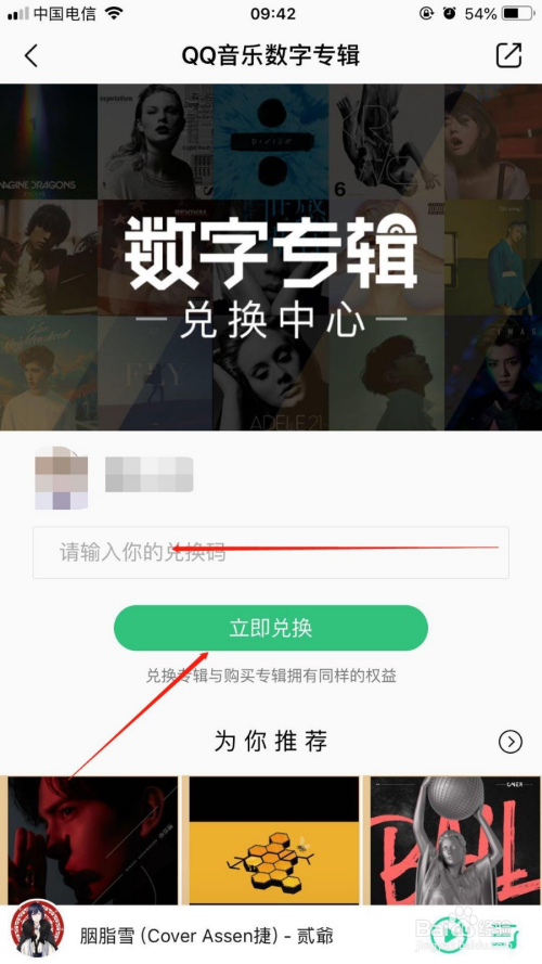同时我们还可以经由过程兑换码来兑换礼品。首先在“数字专辑”中点击“兑换中间”打开,