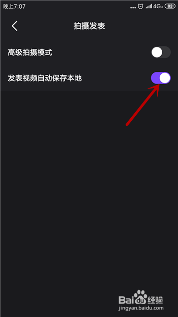 在拍摄颁发中找到【颁发视频主动保留当地】,点击后方的开关封闭这个功能。