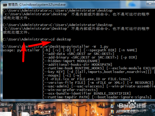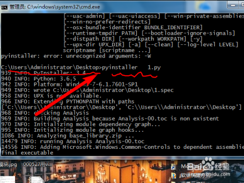 用cd号令将目次改到文件地点的位置,然后用pyinstaller -w 1.py来生当作文件。