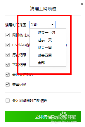 然后,会弹出 清理上网陈迹 的对话框。要先选择但愿清理的项目。