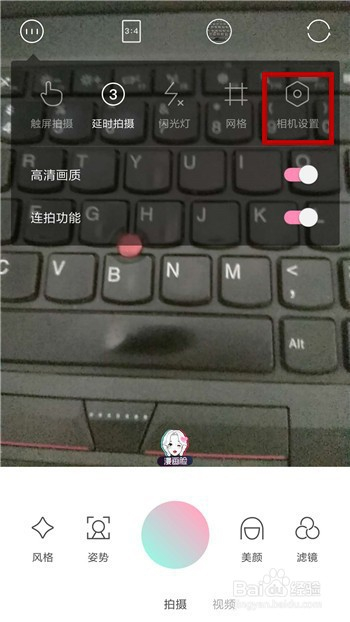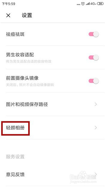 此外我们还可以在轻颜相册里看到照片,在相机设置里点击打开【轻颜相册】。