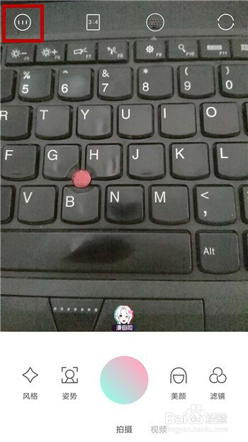 在轻颜相机的拍摄界面中找到左上角的【更多】选项并点击,如图所示。