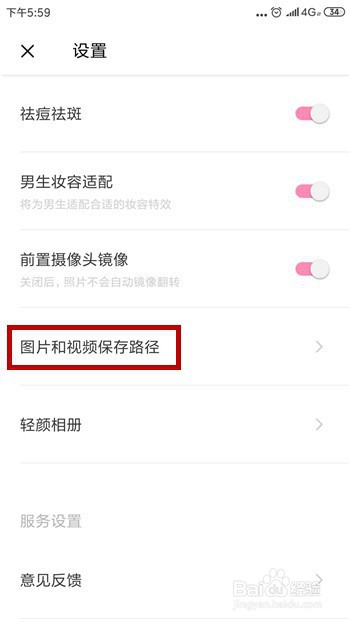 在相机设置中可以看到【图片和视频保留路径】,点击打开这个选项。