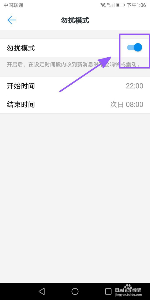 我们将该功能开启按键打开即可,我们可以在该页面中设置勿扰的时候规模。