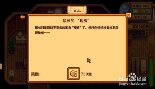 拿到幸运裤后,它会占用背包1格位置,最后我们找到路易斯,像送礼品那样把紫色幸运裤送给他,获得750g金钱,此使命竣事。