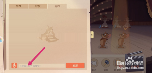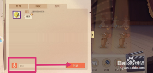 进入猫和老鼠游戏本家儿界面后,点击左下角的聊天对话框。