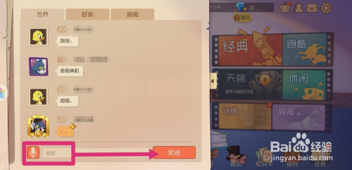 信息发送当作功后,就可以和目生人、老友及房间的队友聊天了。