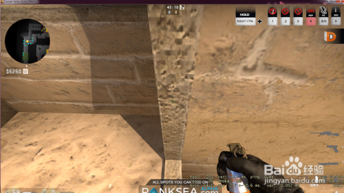 我们拿出烟雾弹,想象一下这片区域的中间点,把准心移上去。