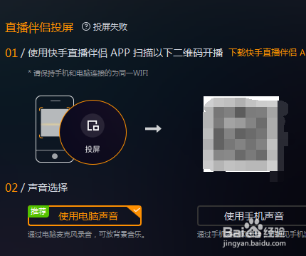 如果手机游戏,需要手机上面有一个快手直播伴侣,这样扫一下这个屏幕上的二维码,就可以手机直播。