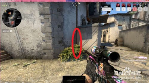 首先,我们找到喷鼻蕉道的这面墙,红圈位置使我们扔道具的处所。
