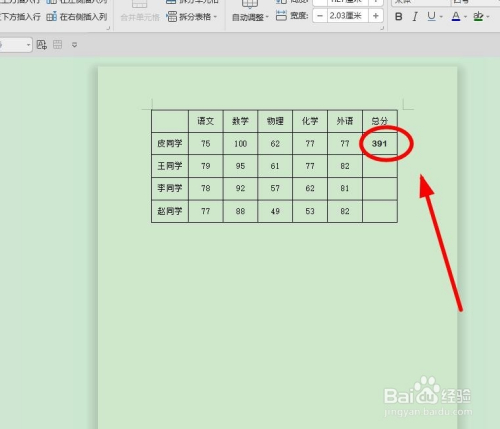 回到文档编纂区,会发此刻选中的空白单位格中,已经快速计较出来该同窗的总分数