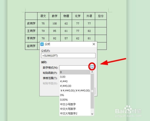 - 别的我们的“公式”对话框中呈现的函数是我们系统默认的乞降函数,如何你想进行其他的公式计较,可以从“公式”对话框中,点击“粘贴函数”后面的倒三角按钮,在呈现的下拉菜单中选择本身需要的函数。